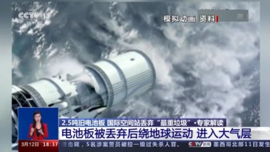 中国航空学会 《航空知识》主编 王亚男:被抛掉的巨大的电池板确实已经成为太空垃圾,但是它不会在轨道上留存太久,这种太空垃圾算是短暂的,不会长时间的影响到轨道的安全运行。