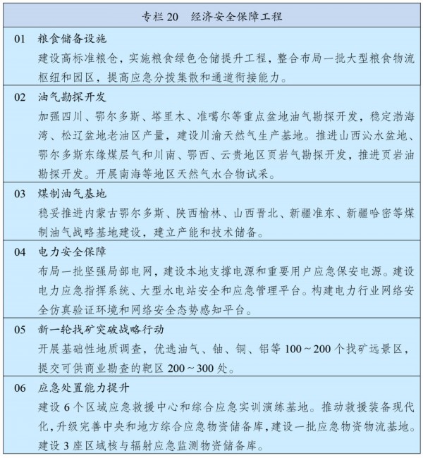 强化经济安全风险预警、防控机制和能力建设,实现重要产业、基础设施、战略资源、重大科技等关键领域安全可控,着力提升粮食、能源、金融等领域安全发展能力。