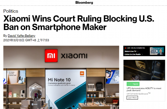 此前1月,特朗普政府以所谓“国家安全”为由将9家中国企业列入所谓“与中国军方相关”的名单中,其中包括手机制造商小米。随后,小米公司在美国哥伦比亚特区联邦地方法院对美国国防部和财政部提起了法律诉讼。