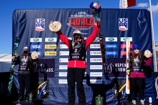 3月12日,在美国阿斯本举行的2021年自由式滑雪世锦赛女子U型场地决赛中,中国选手谷爱凌获得冠军。
