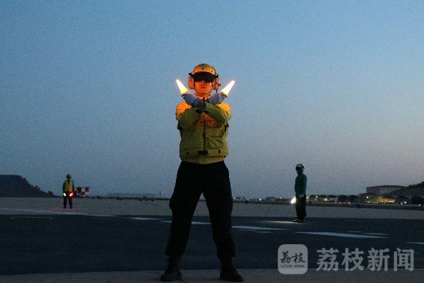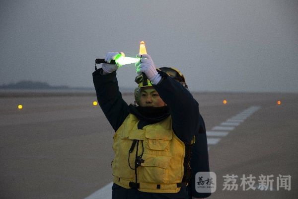 昼夜同训,以训促战。他们的每一个手势、每一个动作、每一个战位,都与航母上的舰面引导标准无缝衔接,确保胜战标尺不差一分一毫,起飞保障能力得到有效检验。