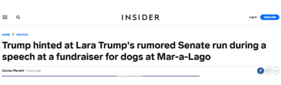 此外,在台上特朗普还提到了儿媳劳拉可能竞选参议员的消息。特朗普说:“我想感谢劳拉,她让人难以置信。我不知道,(听说)你打算竞选参议员。”