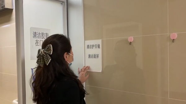 “请用避污纸开门”等提示语