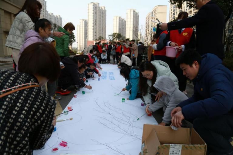 在孩子、家长们以及党员志愿者的辛勤劳动下,不到一个小时,共植树30多株。种植结束后,党员志愿者们给小朋友发放画笔、颜料,小朋友们开心地在十米画卷上作画。