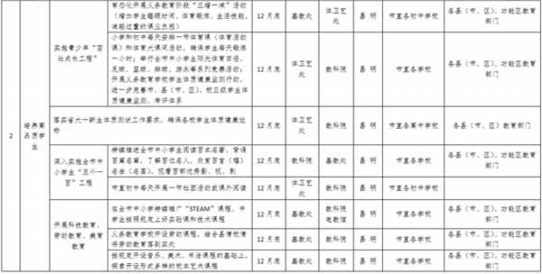 《意见》重点强调“培养高品质学生”。主要内容包括大力实施青少年”茁壮成长工程“、推进全市中小学生”五个一百“工程、开展科技教育、劳动教育、美育教育、开展文明素养提升、生命健康教育行动、深入推进中小学(幼儿园)食堂管理,持续推进阳光食堂平台管理和每日校长公开陪餐、家长定期陪餐制度等。