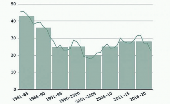 斯德哥尔摩国际和平研究所官方网站15日的报道称,各国之间主要武器的转让总额,在2016-2020年间首次相对上个五年未实现增长。不过,国际武器转让额仍然接近冷战结束以来的最高水平。