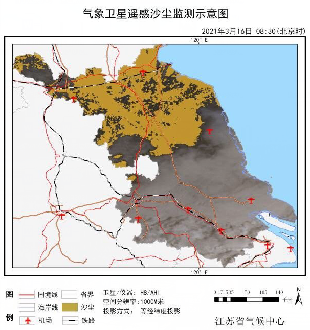 预计本次长江中下游的浮尘天气,会在16日夜间到17日凌晨结束。