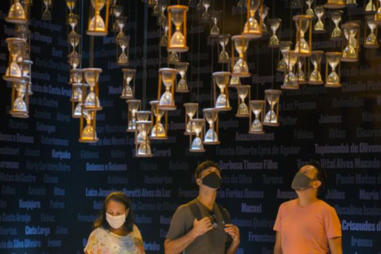3月11日,人们在巴西里约热内卢明日博物馆参观新冠疫情主题展览。新华社发(卢西亚娜·惠特克摄)