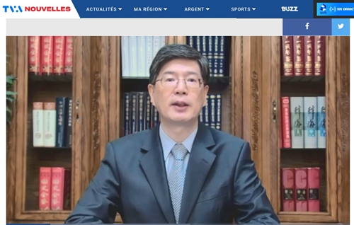 2021年3月12日,驻加拿大大使丛培武就涉疆问题接受法语电视台TVA视频连线采访。