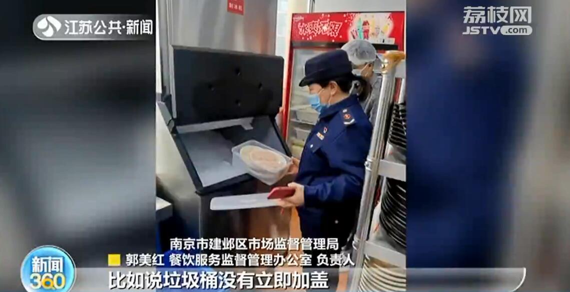 南京市建邺区市场监督管理局餐饮服务监督管理办公室负责人郭美红表示:“我们接到市局的通知,立即对我们区的小龙坎进行执法检查,通过我们现场的检查,也存在一些小的问题,比如说垃圾桶没有立即加盖,厨房后场有私人的水杯,要求我们去的这家店进行整改。”