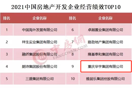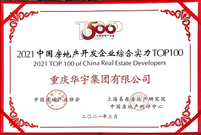 2021年3月16日,由中国房地产协会、上海易居房地产研究院、中国房地产测评中心共同举办的"2021中国房地产开发企业500强测评研究报告"正式发布。华宇集团凭借良好的企业发展战略、出色的市场表现,综合实力突显,荣获“2021中国房地产开发企业100强”第59位,“2021中国房地产开发企业经营绩效10强”第9位。