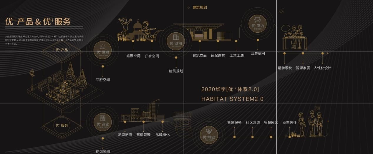 华宇集团在 “品牌+产品”驱动下,不断升级和完善产品体系,从“御璟系”“锦绣系”“时代系”“林语系”四大产品体系的诞生,到优+1.0的提出与优+2.0的升级过程中,华宇“产品经理”的角色定位愈加清晰。