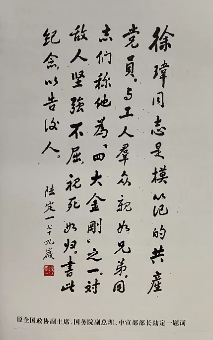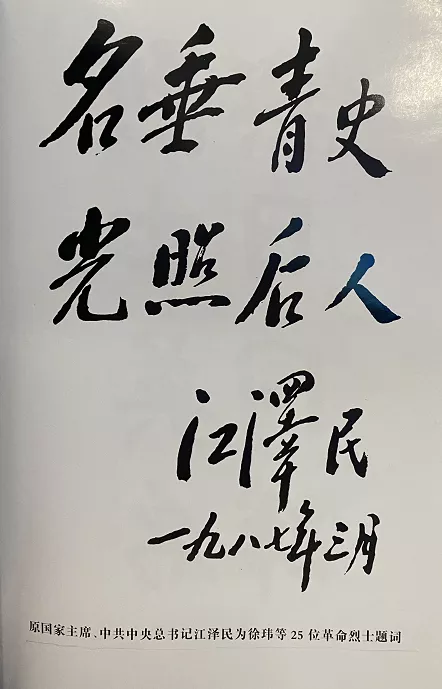 原中共中央总书记、国家主席、中央军委主席江泽民为徐玮等25位革命烈士题词“名垂青史光照后人”,中国人民解放军上将、原南京军区司令员向守志为徐玮烈士题词“烈士英明与日同辉”,原全国政协副主席、国务院副总理、中宣部部长陆定一题词“徐玮同志是模范的共产党员,与工人群众亲如兄弟,同志们称他为‘四大金刚’之一,对敌人坚强不屈,视死如归,书此纪念,以告后人。”