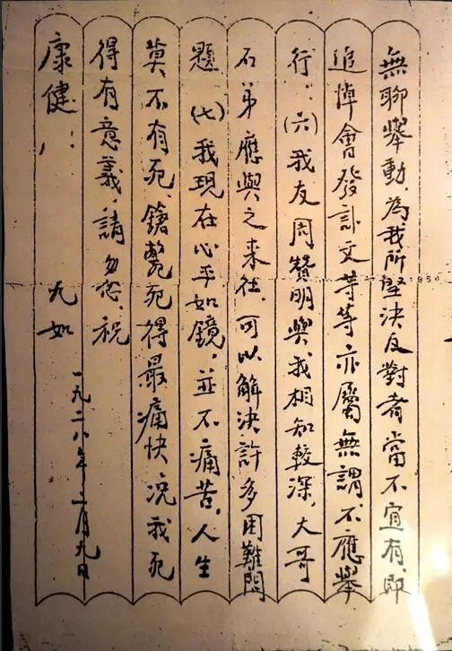 江海博物馆馆藏徐玮遗书《致我的家庭》复印件