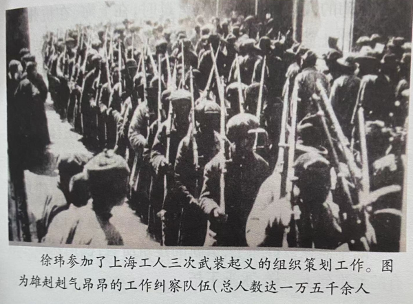 1927年2月23日,为配合上海工人第三次武装起义,中共中央和江浙区委召开联席会议,组织了以周恩来(中央军委书记)、陈独秀(中共中央总书记)、罗亦农(江浙区委书记)、汪寿华(上海总工会委员长)组成的特别委员会,成立了由周恩来为首的军事委员会负责对武装起义作具体领导,另外还成立了宣传委员会。徐玮是宣传委员会委员,他负责起草《市民代表会议、政府》、《准备武装暴动》、《响应北伐军、推翻军阀统治、建立民主政府》等纲领性文件。