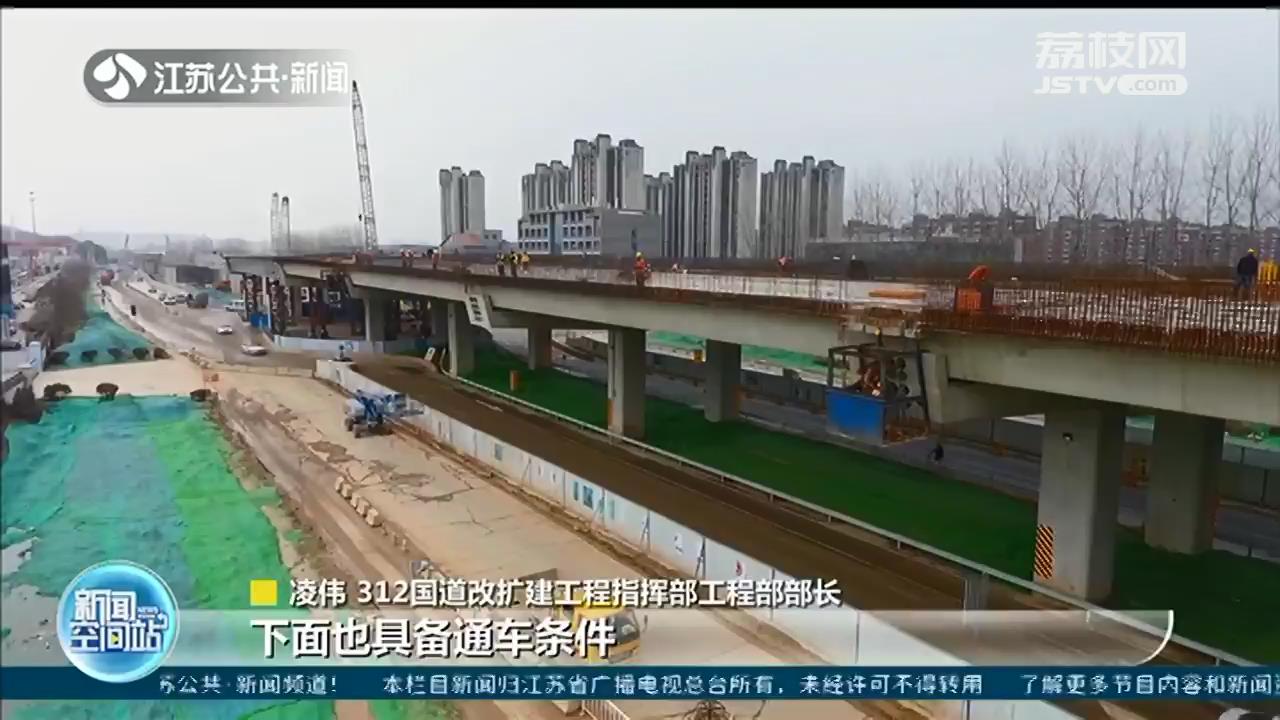 目前,312国道南京绕越高速至仙隐北路段改扩建工程,已经进入了立交施工的关键节点。如果按传统工艺施工,桥面在施工的时候,它的下方会搭满架子,是不能走车的。而现在,上面桥面在正常施工,下方车辆在正常行驶。这是因为这个工程使用了新的工艺叫做装配式施工。