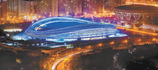 记者日前来到国家速滑馆“冰丝带”,看到现场一派繁忙景象,来自场馆运行团队、场馆设施维护保障队伍的工作人员在馆内来回穿梭,清扫卫生、检查设施设备…大家伙儿摩拳擦掌为即将到来的冬奥会冰上测试活动做足准备。走进速滑馆西大厅,刚刚制作完成的一座影背墙上,“冰丝带”高清夜景图非常夺目,影背墙的背面是几排北京冬奥会体育图标,给人以“赛时的”感觉。