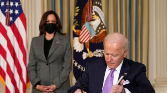美国总统拜登,身后是副总统哈里斯 图源:路透社
