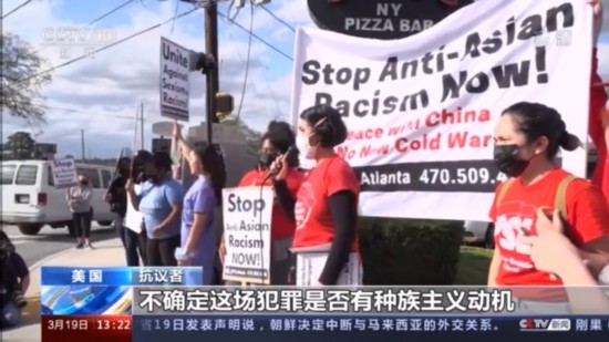 美国亚特兰大部分民众18日举行抗议活动,反对针对亚裔的仇恨犯罪。