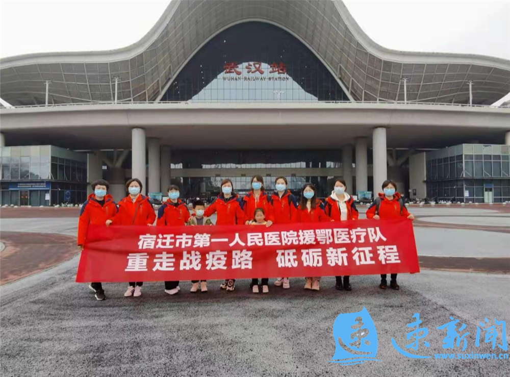 2021年3月19日上午8点16分,宿迁援鄂医疗队队员从高铁宿迁站出发,奔向英雄之城。