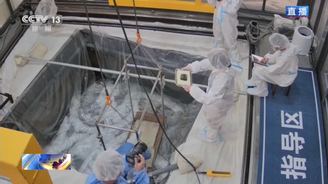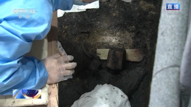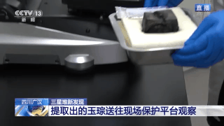在4号坑,考古工作者对清理好的玉琮进行提取。从现有的1、2号坑来看,玉琮经过灼烧而且由于长时间埋压,玉琮口部已经有轻微破裂,但是依然能看出白色玉质。