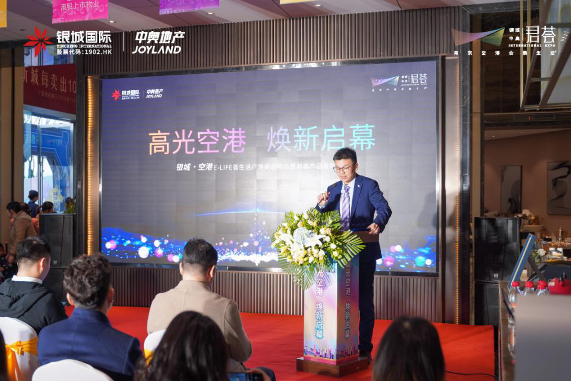 致敬空港,挥毫匠心。2021年银城国际携手中奥地产,择址南京空港新城核心,以国际会展为核心动力,聚能教育、交通、医疗、办公、生态、商业、产业等都会配套,创造出提出的SUPER EXPO+,打造超级会展生活圈。君荟项目营销负责人王乾坤先生,在产品演讲时如是说。