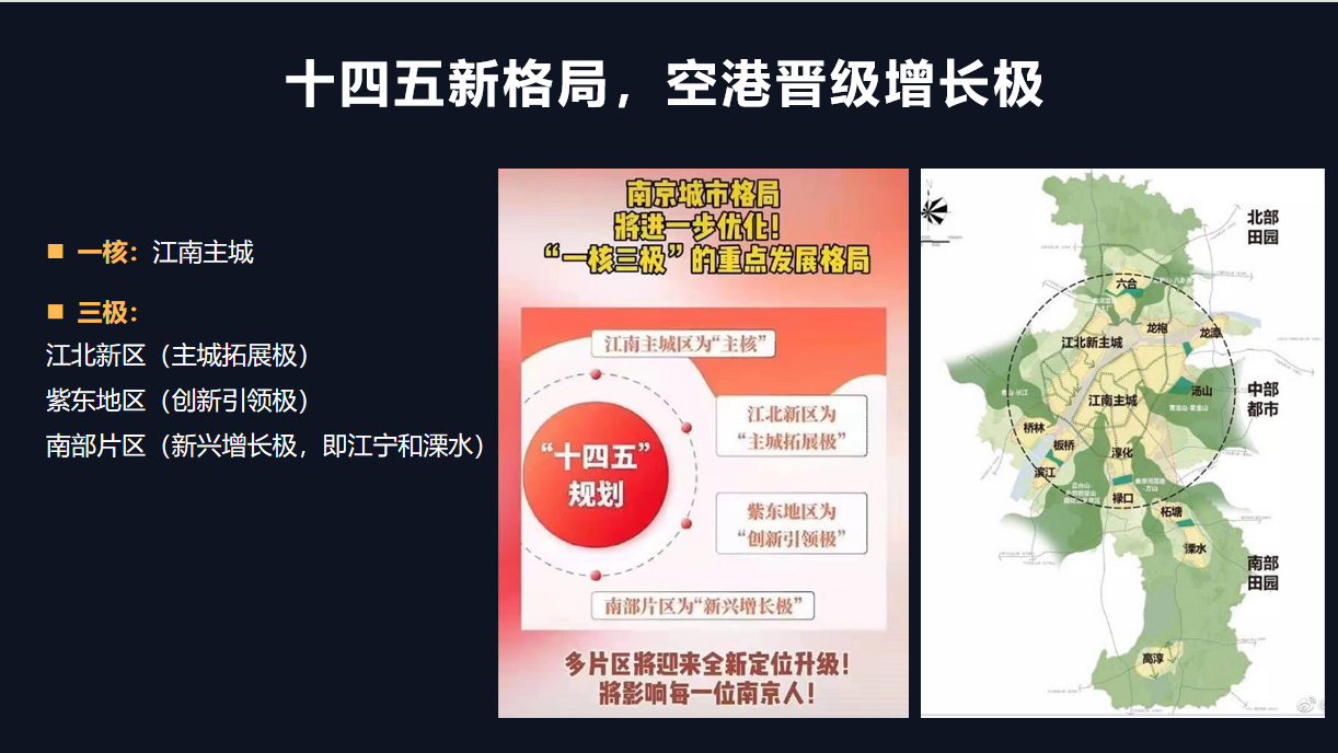 每一座城市,都有一片满载梦想的热土,为城市留下繁华瞩望。作为长三角城市群唯一“特大城市”,南京未来五年将建设成为常住人口突破千万、经济总量突破2万亿元的超大城市。依托十四五目标,构建“一核三极”重点功能布局,其中以高标准建设国家临空经济示范区为核心之一的南部片区无疑是重要的一环。