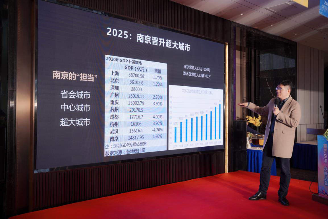 活动现场,孟祥远教授就南京城市发展,发表了如下的观点,他表示,2021年,随着重大项目的发布,空港新城在产业、城市规划、生态环境、生活配套等各方面齐头并进,区域开始进入高质量发展新阶段,拥有着国家级高规格的城市界面的空港新城,迎来腾飞时刻。