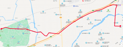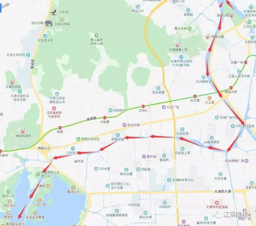 从地铁三号线苏庙站始发,经钱藕路、钱洛路、342省道、锡陆路至阳山旅游度假区;回程则反之。