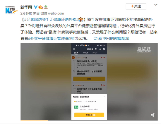 骑手没有健康证到底能不能接单配送外卖?针对近日有群众反映的外卖平台健康证管理漏洞问题,记者化身外卖员进行了体验。而记者“卧底”外卖骑手微信群后,又发现了什么新问题?跟随记者一起来看看外卖平台健康证管理漏洞怎么堵。
