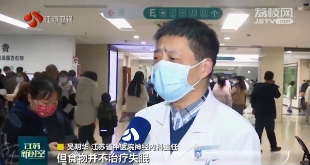 江苏省中医院神经内科主任吴明华说:“很多病人来经常问,有没有医生能推荐的一些食物,能改善睡眠。食物也是重要的,但食物并不治疗失眠,其实对于安眠药来讲,还有我们目前经常用的一些导眠类的药,这些作用时间比较短,能让人很快地入睡,它也不会成瘾。”