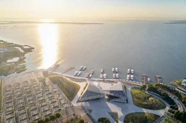 玩累了,去集散中心坐会儿。这座钢筋造就的“茅草屋”,是名副其实的“世界最美客运站”之一。从这里出发,能够坐船恣意欣赏阳澄湖风光。