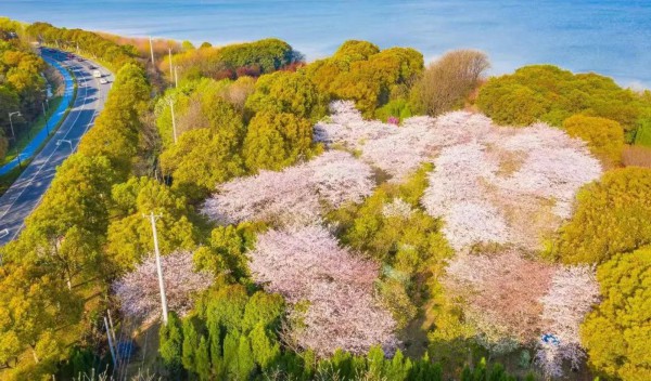 樱花林幽香扑鼻,放眼望去是粉绿叠映,令人心驰神往。