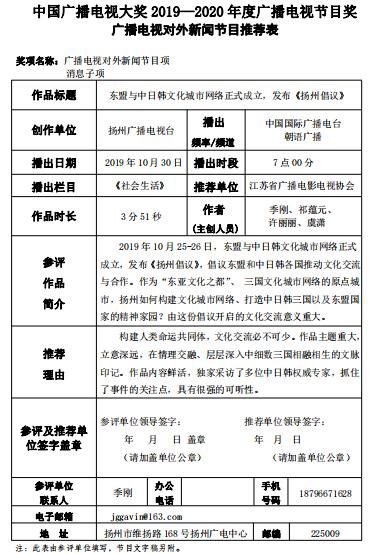 (录音)“这是一次新的出发,我们现在正在按照2020年东亚文化之都的一些相关要求策划相关的活动。东亚文化之都不能局限于东亚文化的一个重要城市,是地处东亚的文化之都,体现了扬州的特色,同时走向亚洲、走向世界。”