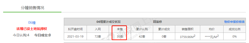 紫牛新闻曾于3月15日报道过“南京江北多家楼盘酝酿集体涨首付”的消息,当地的一批楼盘计划将原本3成的首付,提高至5成甚至8成,其中就包括了江北城南中心板块的望江悦府。此前该楼盘的首付比例为3成,房价30000元/㎡左右,而在望江悦府加推的新房源销售方案中,首付比例仍为3成,保持不变,扬子晚报/紫牛新闻记者在网上房地产看到,截至到3月22日下午3点,其最新销售的72套房源累计认购为42套,目前仍有30套未售,成交数量暂时为零。此外,该楼盘累计入网936套房源,未售套数为215套,占比高达23%。