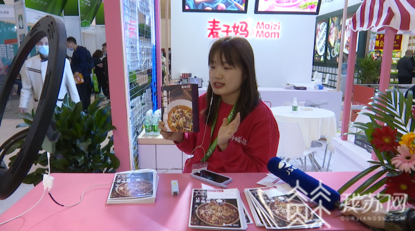 本届展会由食品、非食和生鲜三大版块组成,参展商数量达到1200家,超10万个单品囊括了休闲食品、酒水饮料、美妆护理、日用百货等42个细分品类,规模达到历届之最。其中,不少便利性、功能性食品受到市场的青睐。现场工作人员正通过手机,以直播带货的形式推销手中的这款预包装食品。
