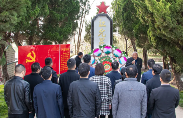伫立在垦牧村江允昇烈士墓前,脑海中浮现出战马萧萧、炮声隆隆的景象,与会的100余名机关党员干部的心中,有一种精神在升腾、升华。