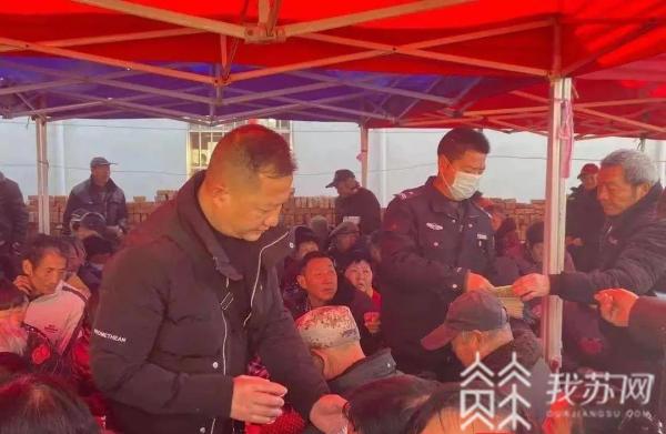 “大家注意了,短信中的中奖、退税、低价购物等‘好事’,一律不要相信......”3月23日上午,连云港灌南县孟兴庄镇老垛村老孟家正在办喜宴,派出所民警借机为其亲友及左邻右舍表演了“反诈”节目,既取得了反诈宣传效果,也为喜宴增添了欢乐气氛。