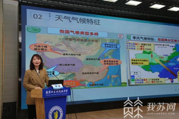 本次活动还邀请了江苏省气象局的气象主播皮亚奇和张洁,为同学们带来“气象主播科普秀”。通过她们绘声绘色的科普,大家知晓了古人测量空气湿度的方法,还认识到龙卷风离我们并不遥远,如果遇上,最好的办法就是躲进地下室以求自救。江苏省气候中心副主任、正研级高级工程师项瑛,为同学们带来了世界气象日主题科普讲座——《海洋,江苏的天气与气候》。项主任以严谨的态度、生动的语言,介绍了海洋对于地球及人类的重要意义,并让大家认识到“气象人”在致力改善气候及人类生存环境上所做的不懈努力。