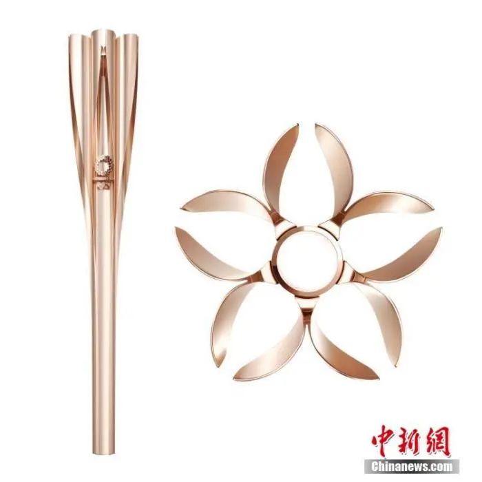 资料图:2020年东京奥运会火炬造型。火炬造型灵感源自樱花。