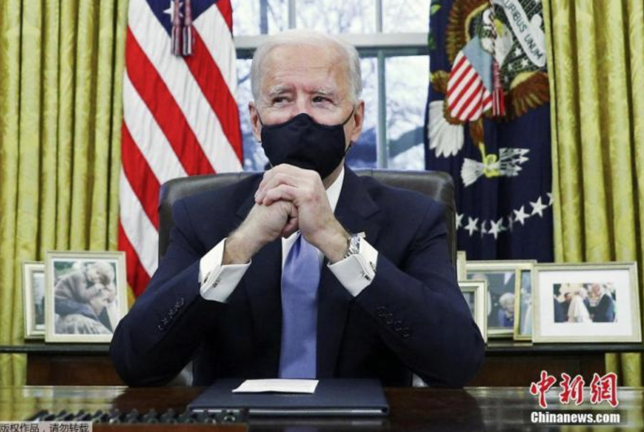 图为美国总统拜登在华盛顿白宫椭圆形办公室。