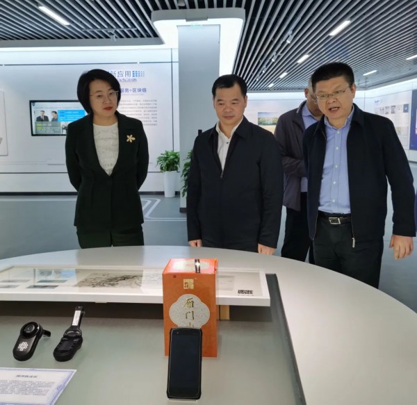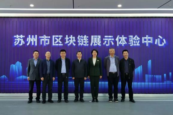 在苏州市区块链展示中心,市轨交集团领导班子一行听取了苏州市区块链产业发展历程及区块链技术介绍,现场参观了未来规划、典型企业、典型案例和政策引领等内容。
