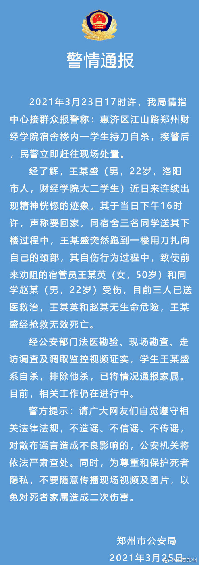 荔枝新闻讯 今天(3月25日),郑州市公安局通过其官方微博发布一则警情通报。