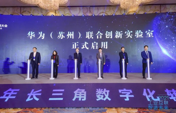 苏州市工信局副局长金晓虎,相城区副区长、相城高新区党工委书记王执晴,相城区副区长曹岩,华为公司流程IT副总裁熊康,方点科创董事长何振兵,华为政企苏州业务部区域经理程俊杰,共同启动华为(苏州)联合创新实验室。