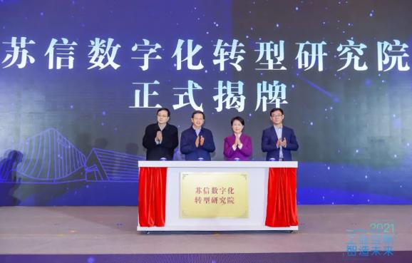 江苏省工信厅副厅长胡学同,相城区委副书记、区长季晶,江苏省企业信息化协会会长闫浩,优倍电气董事长、苏信数字化转型研究院院长董健为苏信数字化转型研究院揭牌。
