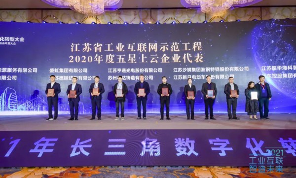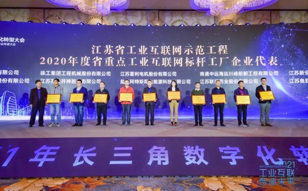 2020年,江苏遴选出了10家互联网+先进制造业基地、62家重点工业互联网平台、61家重点工业互联网标杆工厂、97家五星级上云企业。活动现场对部分获评基地、企业代表进行了授牌。