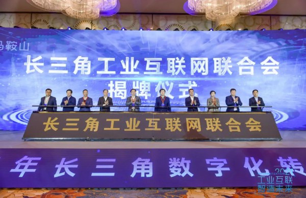 工信部信息技术发展司两化融合推进处处长冯伟、江苏省工信厅副厅长胡学同、浙江省经济和信息化厅二级巡视员戴迪荣、安徽省经济和信息化厅总经济师潘峰、苏州市副市长杨知评、上海市经济和信息化委员会四级调研员李海涛、上海市工业互联网协会秘书长王旭琴、浙江省企业信息化促进会副会长宋锐、安徽工业互联网产业联盟副秘书长童年春、江苏省企业信息化协会秘书长徐泰伟共同为长三角工业互联网联合会揭牌。