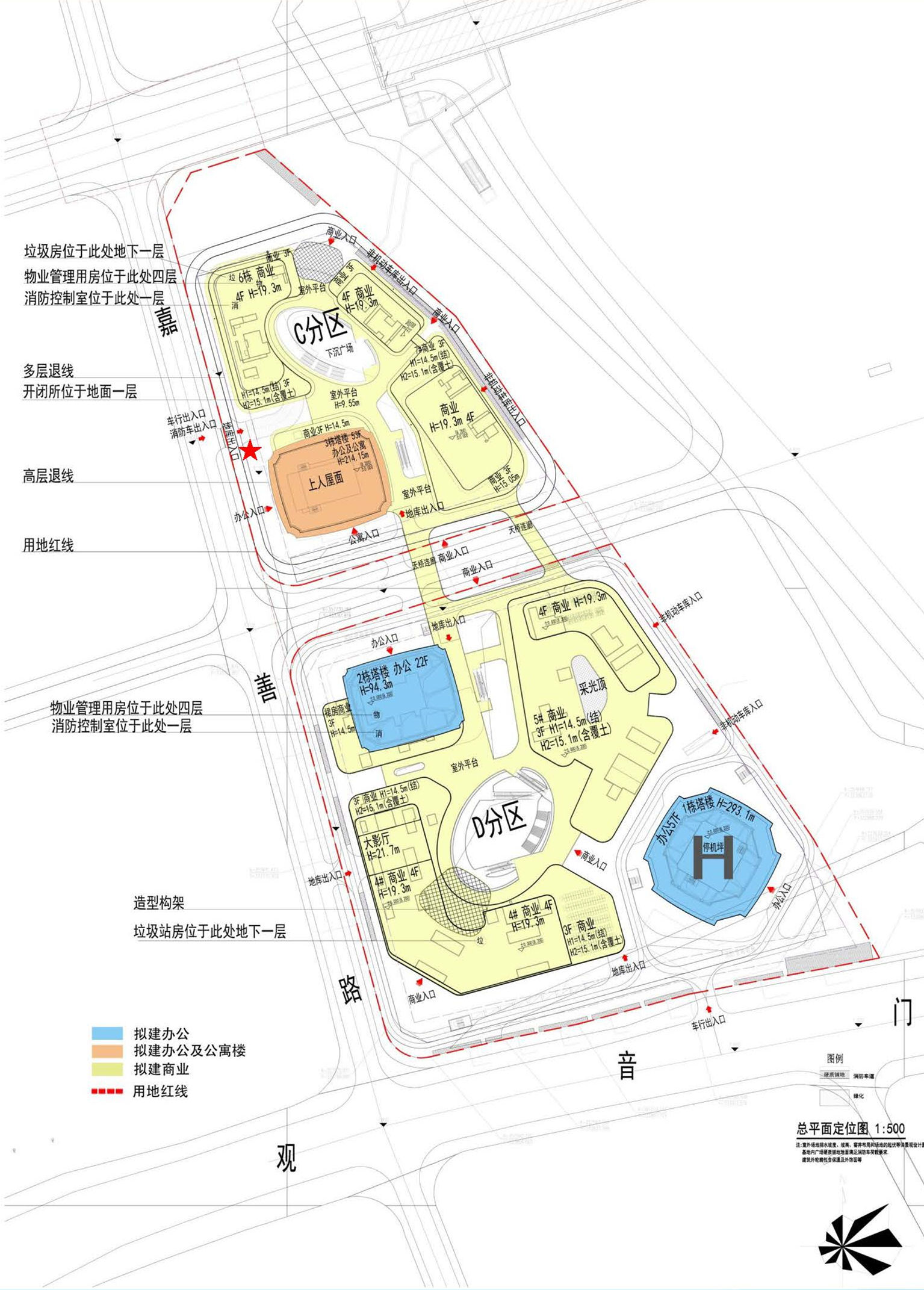 根据规划文件中显示,C分区:3#塔楼直升机停机坪规划调整为上人屋面;D分区:1#塔楼高度由299.9米调整到293.1米,层高不变,仍是57层,该栋楼上停机坪保留。