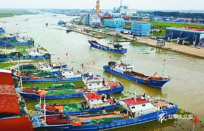 △在射阳县黄沙港镇国家中心渔港,一艘艘渔船劈波斩浪满载而归。 盐阜大众报报业集团融媒体记者 王亚洲 摄