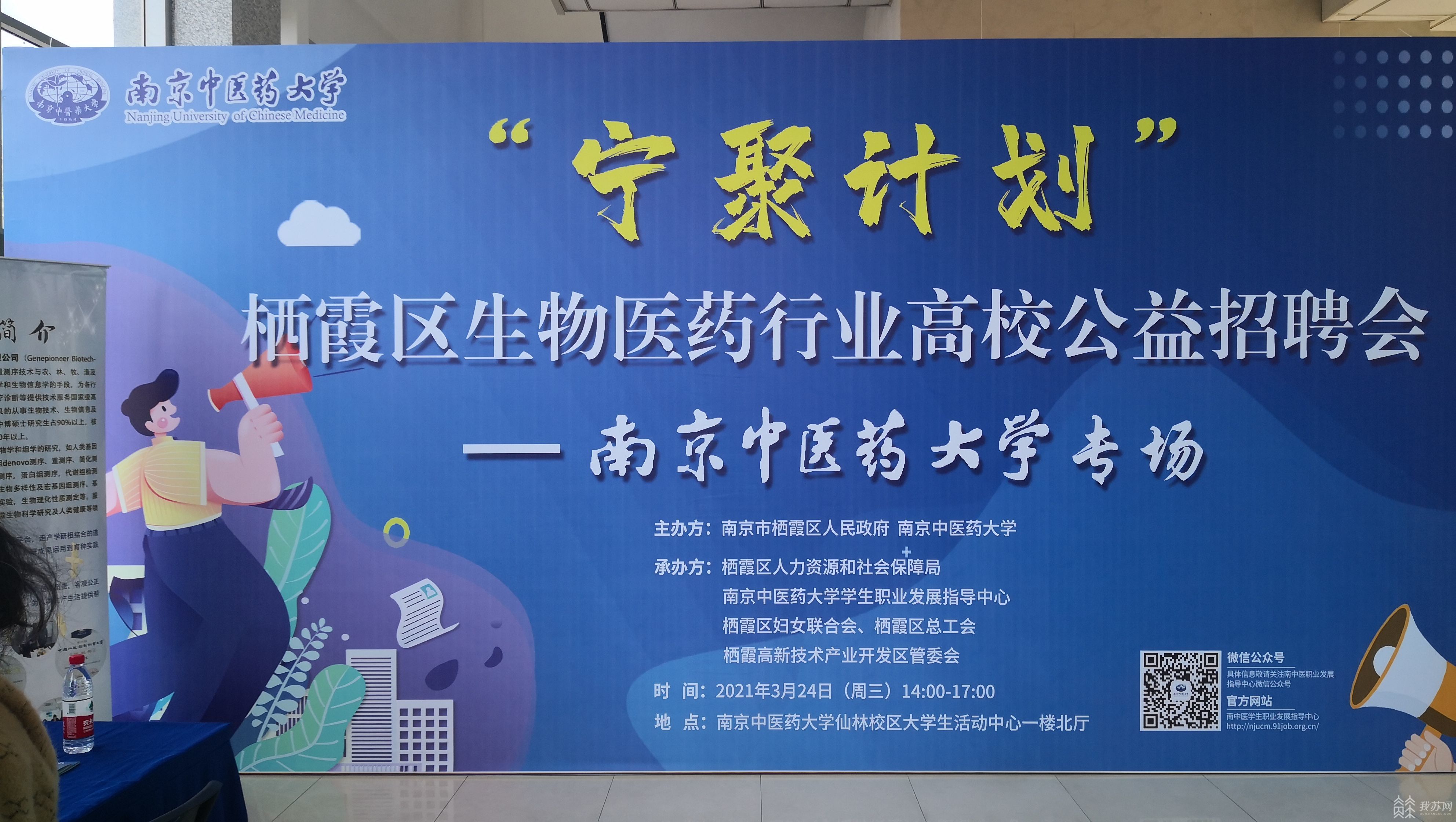 3月24日下午,2021年“宁聚计划”栖霞区高校公益招聘会生物医药行业专场在南京中医药大学(仙林校区)成功举办,此次活动是南京市“紫金山英才宁聚计划”大学生毕业季系列招聘活动之一,由栖霞区人社局联合区妇联、区总工会、栖霞高新区、南京中医药大学大学生职业发展指导中心共同举办。